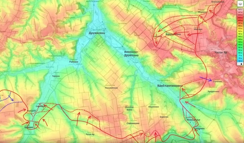 Значительная часть Константиновки уже находится в «серой зоне» или под контролем ВС РФ. Положение гарнизона ВСУ после прорыва российской армии у Веролюбовки оценивается как катастрофическое.