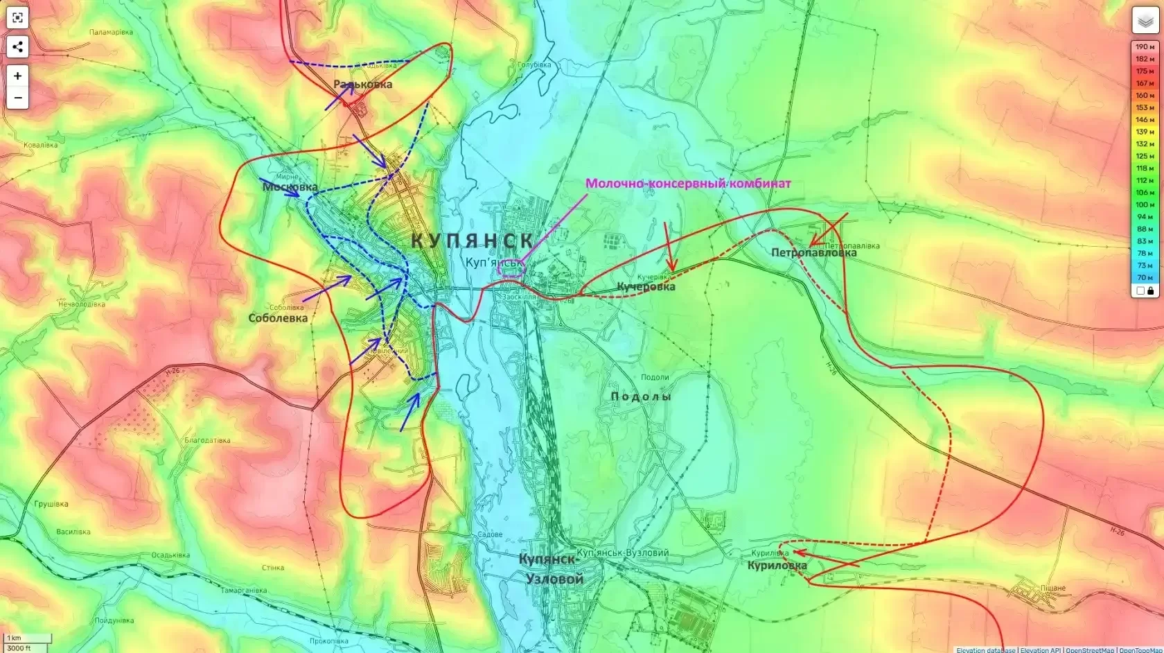 Особое внимание приковано к району молочно-консервного комбината. Средства объективного контроля подтверждают присутствие российских штурмовых групп на территории этого стратегически важного предприятия.