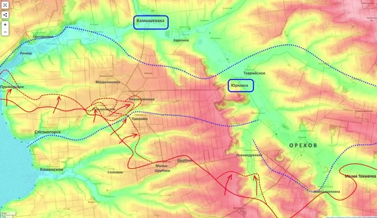 После завершения боёв за Приморское российские войска, по оценке аналитика, могут попытаться продвинуться в сторону Магдалиновки и далее - на Камышеваху, создавая задел для будущего наступления на Запорожье.