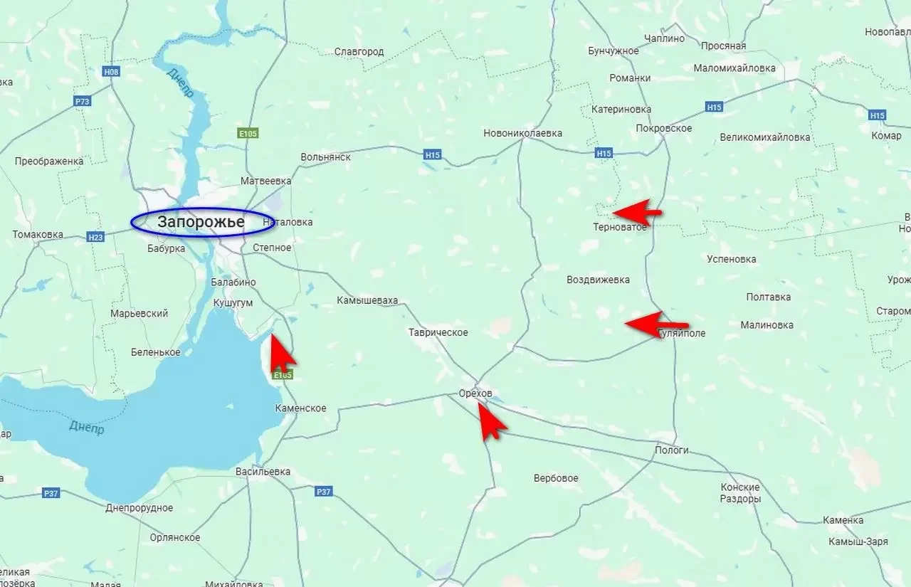 Российские войска идут на Запорожье с двух сторон, прорывая оборону ВСУ с востока, взяв Гуляйполе и фактически взломав линию обороны по реке Гайчур, а также с юга, наступая на Орехов и прорываясь по берегу бывшего Каховского водохранилища. И если группировке «Восток» ВС РФ еще предстоит пройти немало километров до Запорожья, то штурмовики группировки «Днепр» в ближайшее время могут выйти на расстояние артиллерийского огня, отмечает "Военное обозрение".