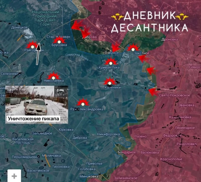 Во время попытки вражеской атаки из Брусовки вдоль Северского Донца к Дибровой российские операторы БПЛА ликвидировали почти половину группы противника в лесу, поиск оставшихся боевиков продолжается.