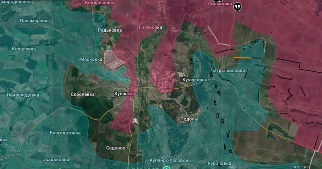 Второе и более приоритетное направление - восточный берег Оскола. Российские подразделения наступают через Песчаное и Куриловку, стремясь выйти к переправам в районе Купянска-Узлового. Успех здесь может серьёзно подорвать устойчивость всей левобережной группировки ВСУ.