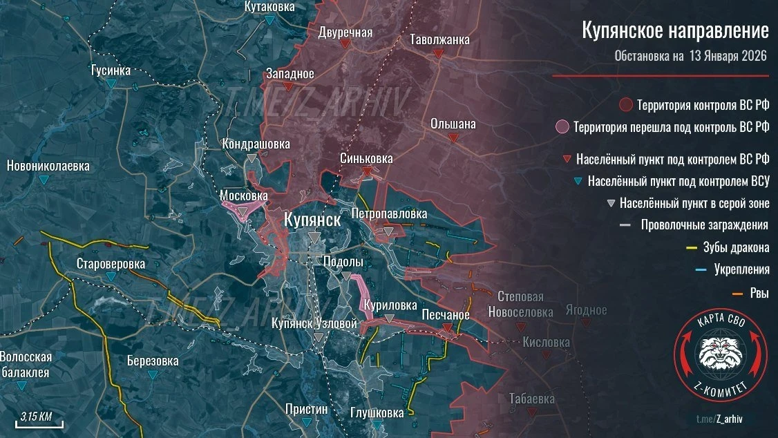 Карта боевых действий на Купянском направлении на 14 января 2026