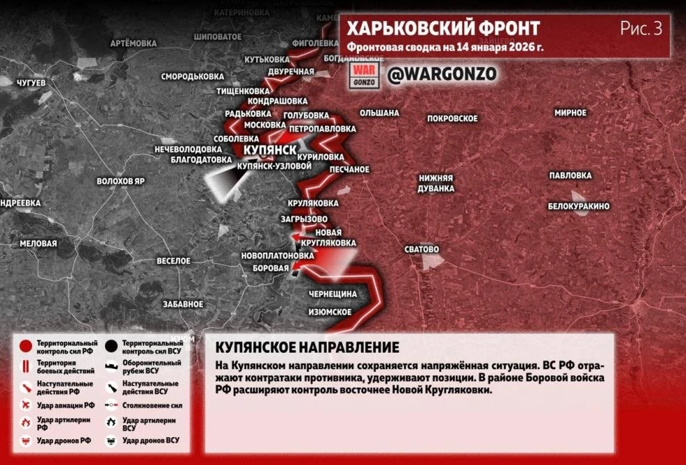 Обстановка на Купянском направлении: карта боевых действий на сегодня, 14.01.2026
