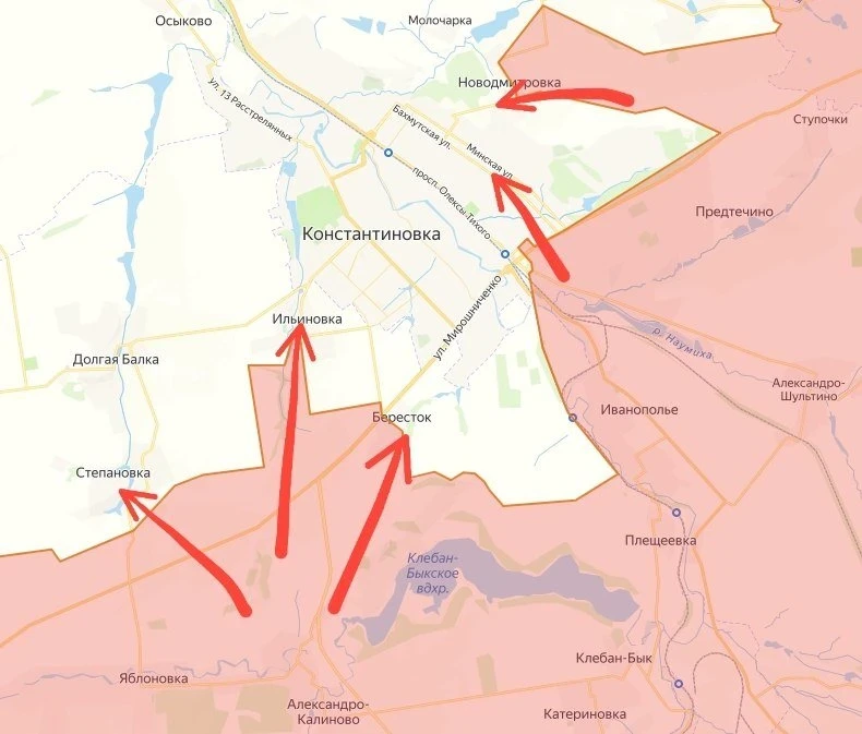 В результате, ВСУ оказались связаны в боях за Степановку, в то время как ВС РФ со стороны съезда на Александро-Калиново прорываются к западной окраине Константиновки.
