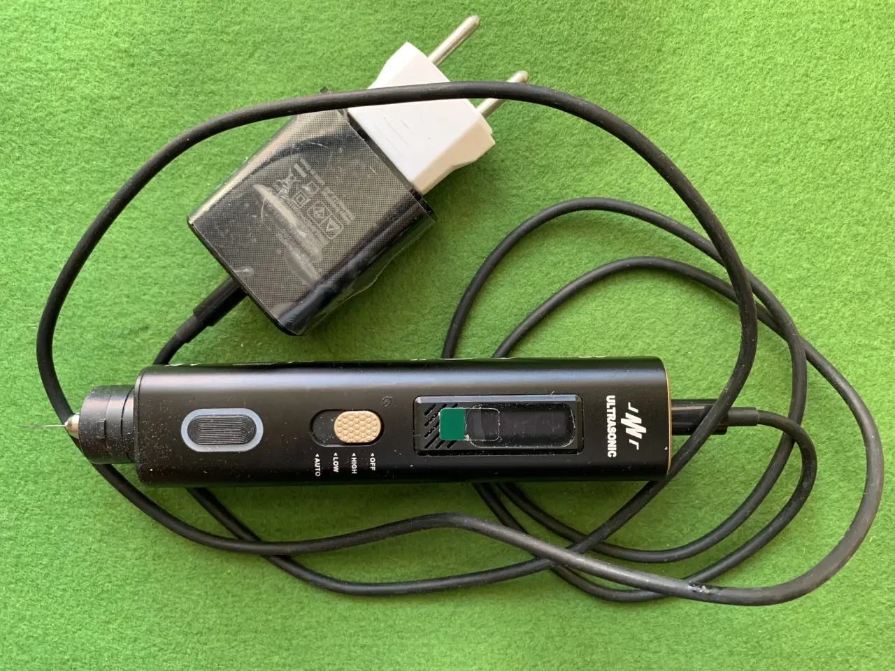 Зато сегодня научно-технический прогресс подарил нам очередной китайский гаджет – ультразвуковой нож для резки древесины. Немного попискивает словно комар, на некоторых режимах работы немного дымит – видимо, лезвие его еще и нагревается, но зато и тонкую фанеру, и цельнодеревянные ламели толщиной 1,5-2 мм режет как масло, а уж про бумагу толщиной 0,5 мм можно и не говорить. Правда, по металлической линейке не режет. Наверное, контакт с металлом ему противопоказан. Но зато резать «от руки» просто удовольствие.