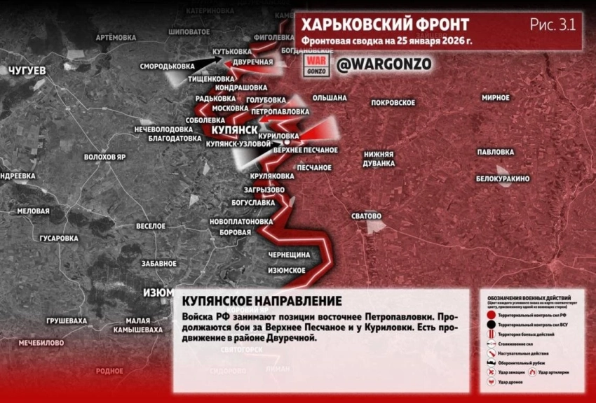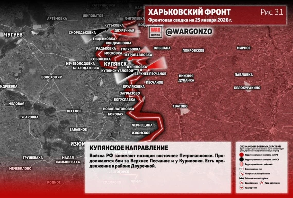 Карта боевых действий на Купянском фронте: данные на сегодня, 25.01.2026