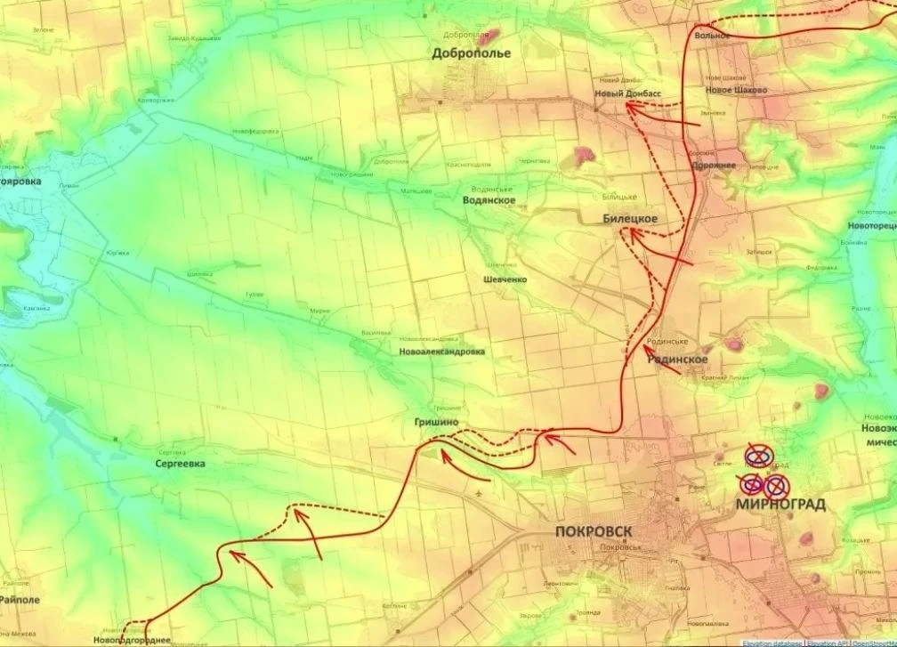 В Гришино российские штурмовые группы сумели выбить подразделения ВСУ из восточной части посёлка и продолжают продвижение вглубь застройки. По оценке наблюдателей, именно контроль над такими точками позволяет постепенно расшатывать всю систему обороны Покровского узла.