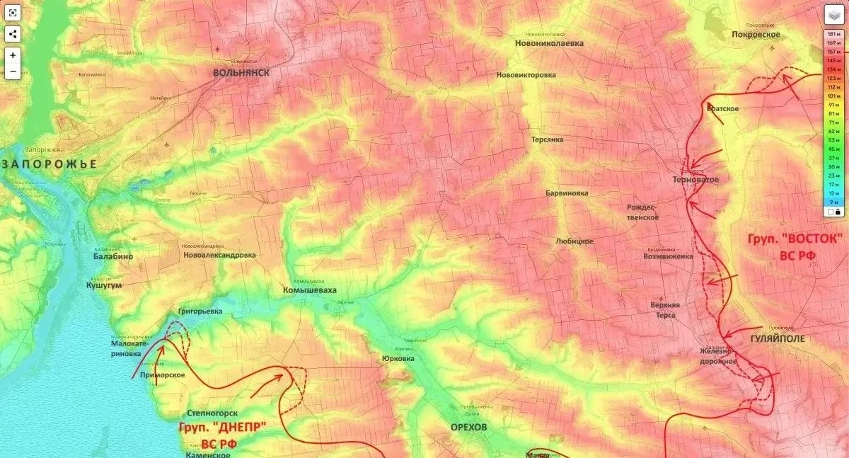 С начала суток под контроль ВС РФ в Запорожской области перешли порядка 14 квадратных километров территории. Приближение к Запорожью с юга увеличивает спектр оружия, которое можно применять по объектам противника в черте областного центра.