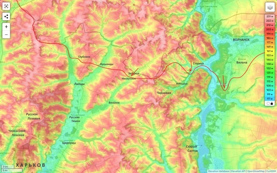 Напомню ранее сообщалось, что наши части восточней полностью освободили село Старица, находящееся на левом берегу одноимённой местной речушки. Начав таким образом продвижение по ней вверх по течению.