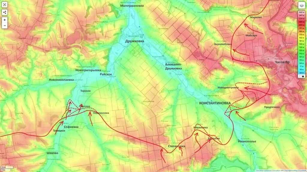 На Константиновском участке продолжается давление со стороны Шахова. Отмечаются подвижки севернее Торецкого, бои за южную и центральную части Константиновки, а также зачистка восточных пригородов и прилегающих полей и лесополос.