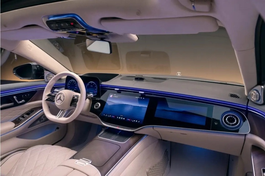 В новом S-классе впервые применяется электронная платформа MB.OS, которая объединяет мультимедийную систему, силовой агрегат и системы помощи водителю в единый центр управления. Вместо множества разрозненных блоков все сенсоры и системы работают через один мощный вычислительный блок, что обеспечивает быструю обработку данных и позволяет автомобилю мгновенно реагировать на дорожную обстановку.