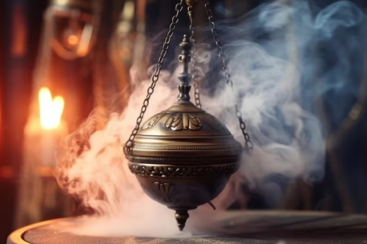 Дым, поднимающийся из кадила, символизирует возношение молитв и жертвы к Богу.
