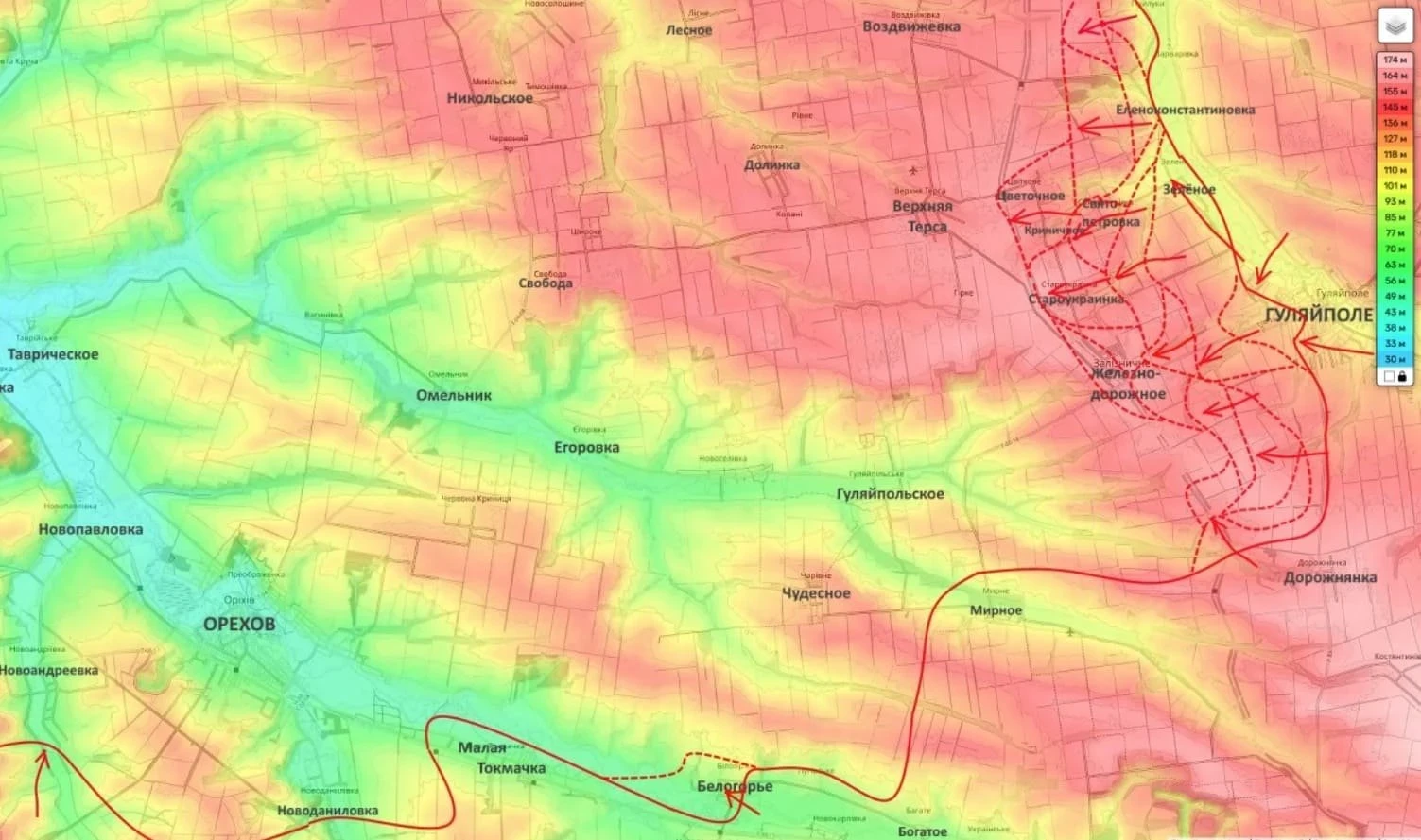 Однако в целом на данном участке фронта инициатива находится в руках российских бойцов. После того, как ВС РФ дожмут Вооружённые силы Украины (ВСУ) в этих населённых пунктах, они получат возможность охватывать Орехов с северо-запада и в дальнейшем двигаться на Запорожье.