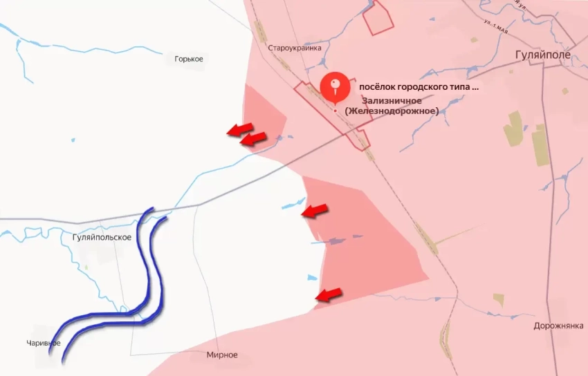 Сегодня подтвердилась информация о продвижении российских войск южнее и западнее Зализничного (Железнодорожного). В общей сложности площадь освобождённых территорий на этом участке фронта составила порядка 16 квадратных километров с начала суток. Это участок между Зализничным и расположенным юго-западнее Мирным. На этой территории располагались позиции противника, в том числе те, которые он создал как «опорные» - для наступления на Гуляйполе, сообщает "Военное обозрение".