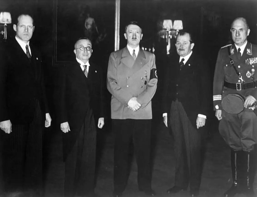 На снимке, датированном 30.01.1939 года, встреча Адольфа Гитлера с ведущими инженерами и промышленниками Третьего рейха, связанными с авиационной и военной промышленностью