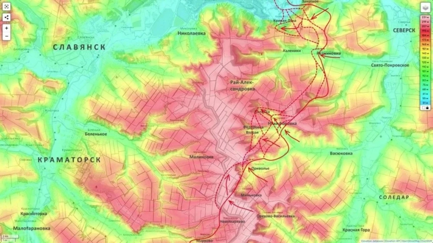 На Славянско-Краматорском направлении российские силы, опираясь на освобождённую Липовку, ведут бои во Второй Федоровке и зачищают балки к югу от Александровки. Подготовка идёт к выходу через господствующие высоты на Калиновку и Кривую Луку. Отдельно подчёркивается: «Важный момент: Российская армия впервые начала применять ствольную артиллерию по целям в границах самого Краматорска».