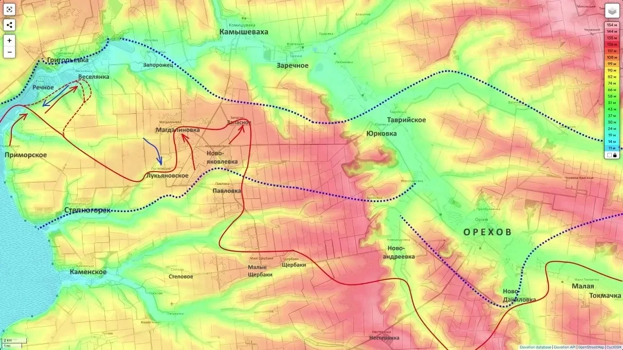 Но самое интересное творится в полосе группировки «Днепр». Там сейчас не просто тактическое продвижение. Там - зачистка. Веселянка, Магдалиновка, Запасное… Методично, шаг за шагом. По словам Подоляки, цель этих усилий куда масштабнее - сформировать плацдарм для весенне-летнего наступления. Логика просматривается железная: обойти Орехов и уже оттуда, с фланга, целиться на Запорожье.