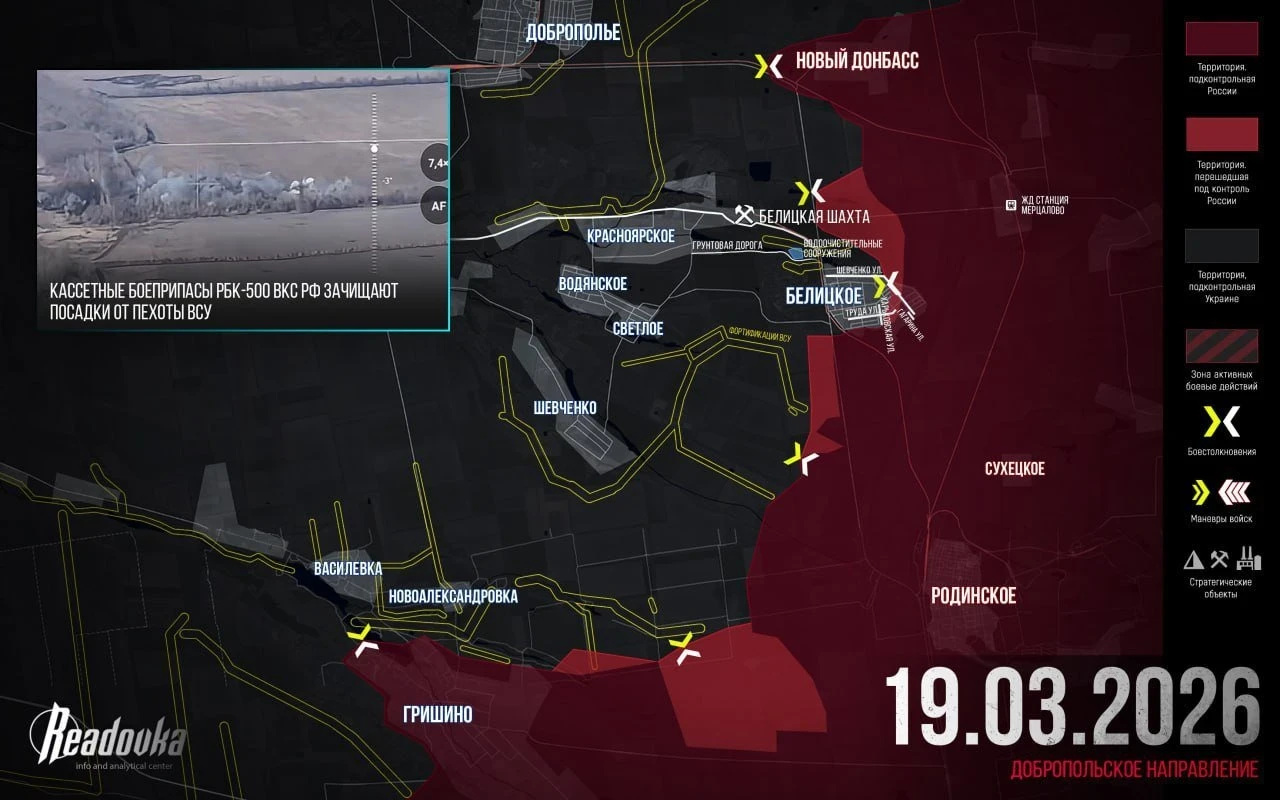 Враг отчаянно цепляется за опорные пункты на рубеже Гришино - Родинское. В Белицком и Новом Донбассе обстановка пока без существенных изменений.