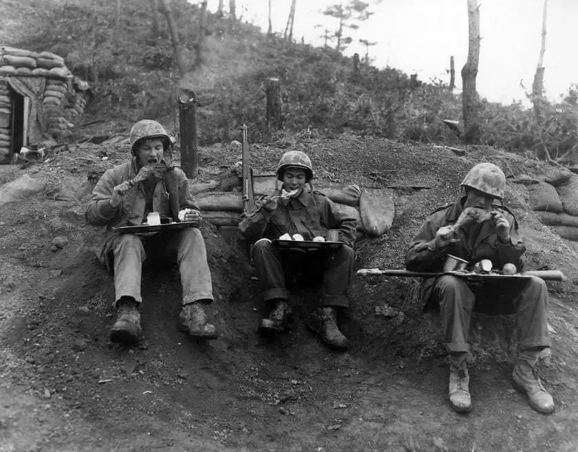 На 24 ноября выпал американский национальный праздник — День Благодарения. В этот день принято есть индейку и яблочный пирог, поэтому интенданты «войск ООН» проявляли чудеса изворотливости, дабы обеспечить джи-ай праздничным ужином. Иногда полагающиеся лакомства сбрасывали на позиции с самолётов под гогот союзников: любовь американцев к комфорту вызывала море шуток не только у турок, но даже у англичан. Тем не менее ложное отступление китайцев вызвало у американского командования волну эйфории. Вместо того чтобы подвозить мёрзнущим у костров солдатам зимнюю форму, некоторые командиры начали паковать излишки амуниции для отправки обратно в Японию. Никто не знал, что ту форму, в которой американцы встретят свой национальный праздник в 1950 году, им придётся носить до февраля следующего года. Тем, кто выживет, имеется в виду.