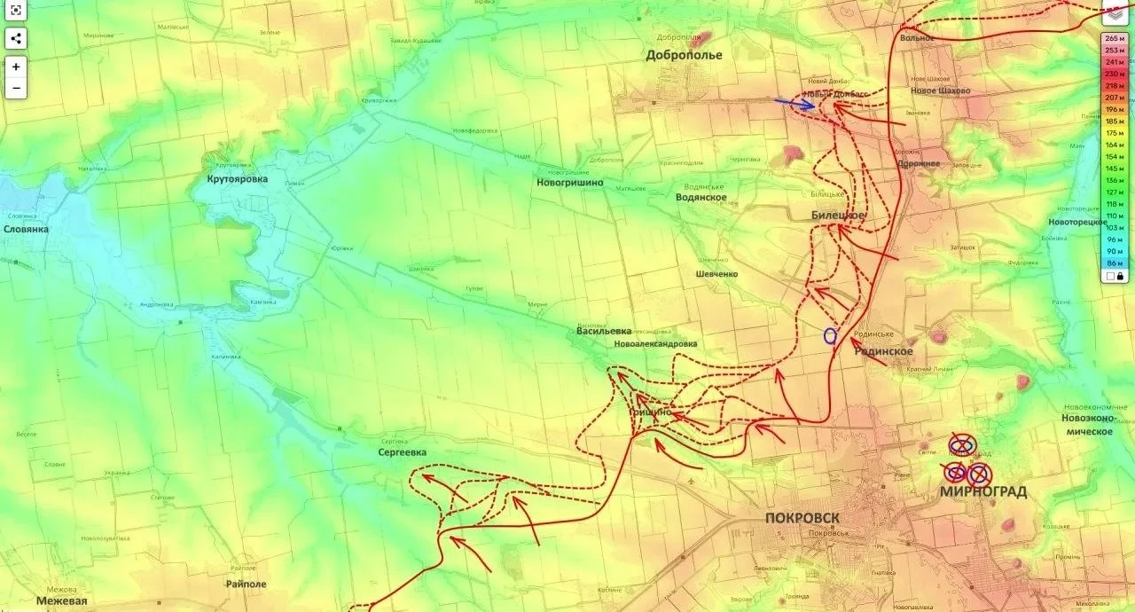 На Покровско-Добропольском направлении сейчас разворачиваются наиболее масштабные и кровопролитные сражения. Российские подразделения ведут наступление широким фронтом (от Сергеевки до Нового Донбасса) в общем направлении на Доброполье.