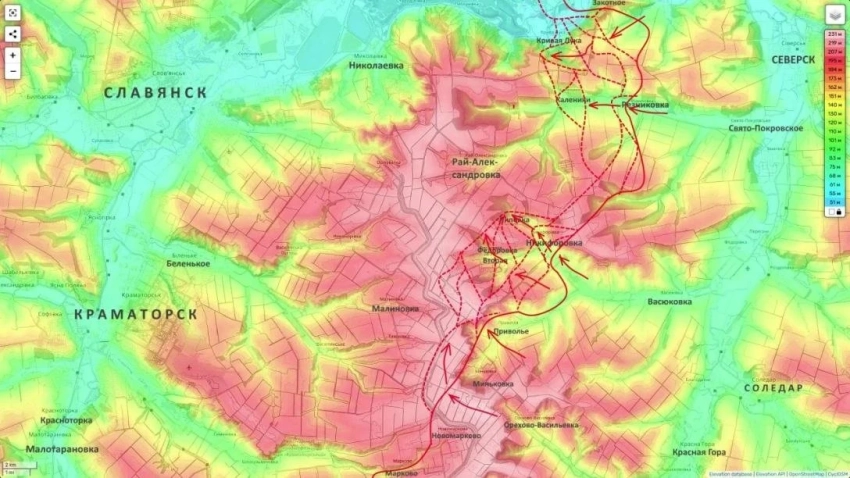 В свою очередь на Славянском направлении идут атаки от Приволья и Второй Федоровки к Малиновке. С трех сторон предпринимаются попытки штурма Рай-Александровки. Взятие господствующих высот южнее Кривой Луки существенно облегчит наступление на Рай-Александровку с севера и востока.