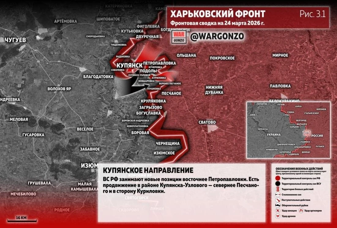 Главные новости » Эксклюзив » Вскрылась текущая обстановка на Купянском фронте: новые данные от военных, подробности на 24.03.2026
