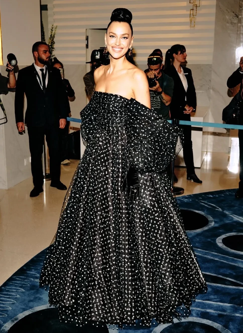 Алессандра Амбросио появилась на церемонии открытия в зелёном платье Zuhair Murad. В образе супермодели плохо всё: цвет, крой и посадка платья, особенно в сочетании с неактуальной причёской и колье с фиолетовым камнем. Ещё один неудачный образ на открытии был у Ирины Шейк. При всей любви к российской модели кажется, что её пышное платье в горох спасла бы другая укладка, например, распущенные прямые волосы.