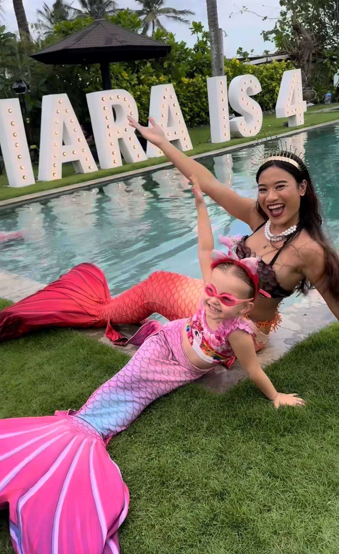 Вечеринка у бассейна, русалки и разноцветный торт: Алеся Кафельникова отпраздновала день рождения дочери