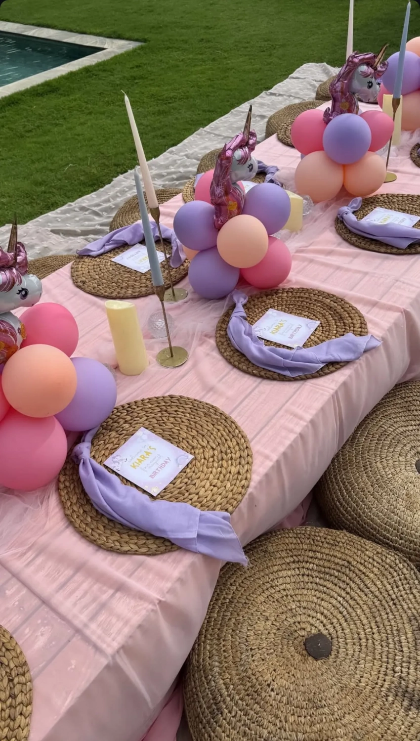 Кафельникова, которая недавно снялась в кампейне Vivienne Westwood, устроила для дочери вечеринку у бассейна. Территорию украсили надувной замок и множество воздушных шаров. Киара примерила на себя образ русалки и задула свечи на разноцветном торте с единорогом.
