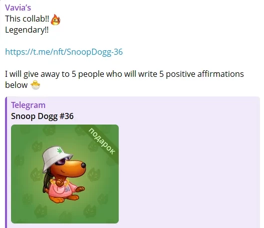 Американский рэпер Снуп Догг выпустил клип на трек под названием Gifts ("Подарки"), который посвящён мессенджеру Telegram и его основателю Павлу Дурову. Видео опубликовано на официальном YouTube-канале музыканта.
