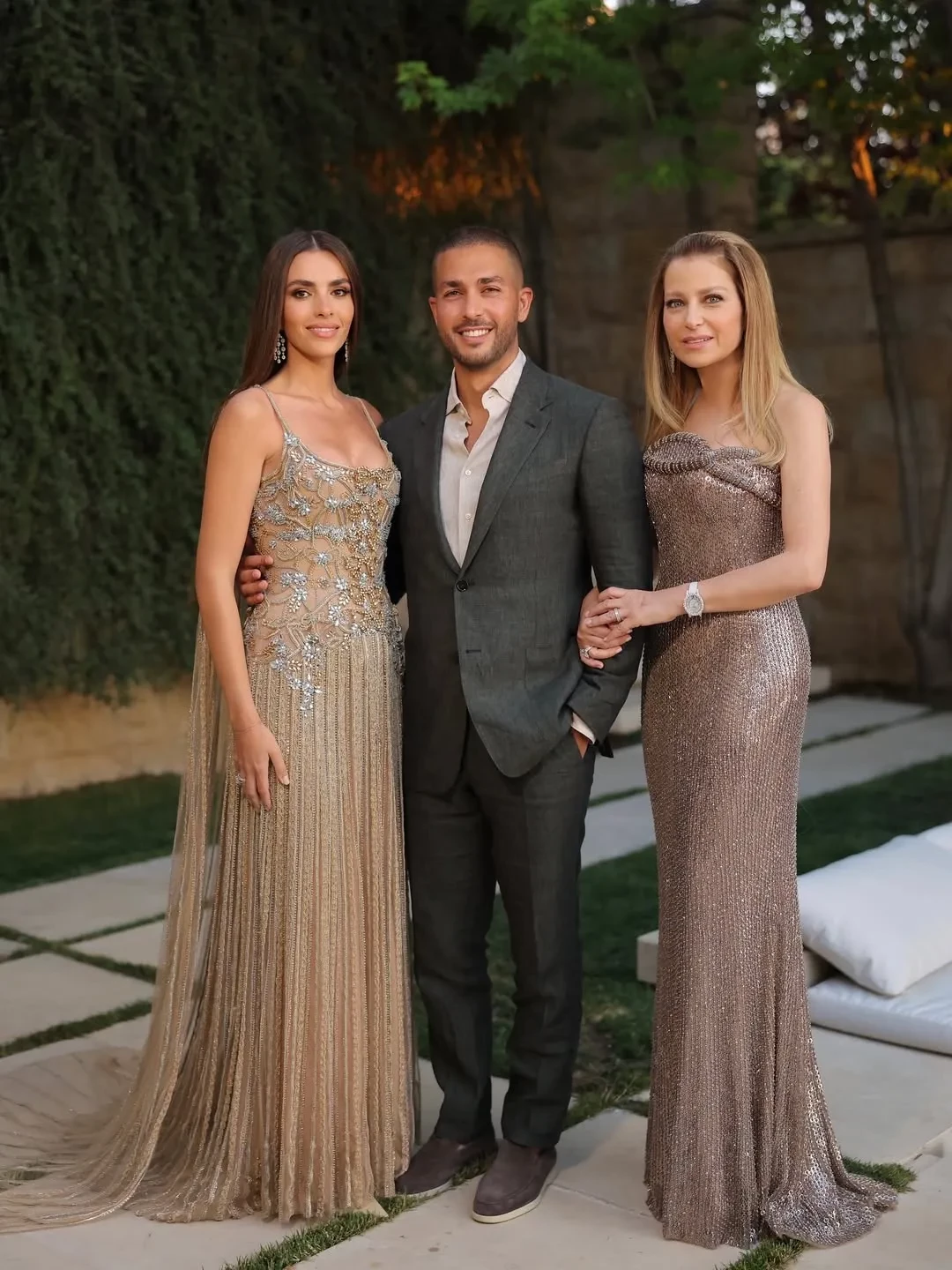 Селио Сааб и Зейн КутамиЗейн блистала перед гостями в кутюрном платье цвета шампань, расшитом кристаллами и созданном, конечно, знаменитым модным домом свёкра — Elie Saab. Жена и невестка дизайнера тоже надели его творения, дополнив их ювелирными украшениями с бриллиантами.