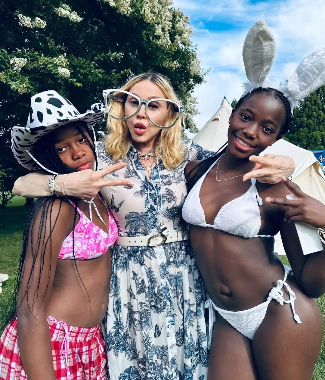 Вечеринка у бассейна и Лабубу: Мадонна отметила 13-летие дочерей-близнецов с молодым бойфрендом и детьми