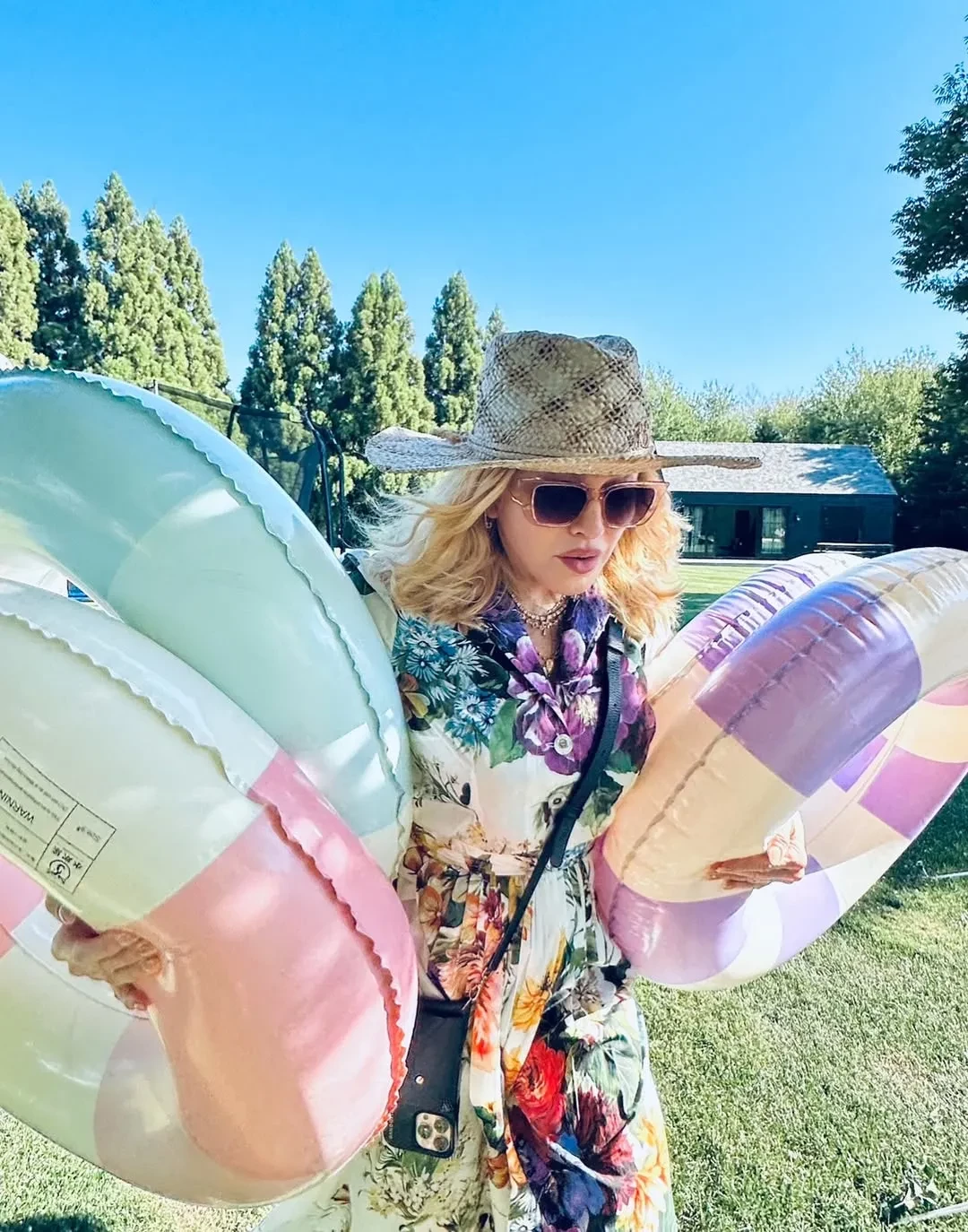 Певица устроила вечеринку у бассейна в стиле Лабубу. Мадонна показала свой праздничный торт в форме модной игрушки и пошутила, что, раз его уже съели, близнецам придётся самим заработать на Лабубу, победив в спортивных соревнованиях.