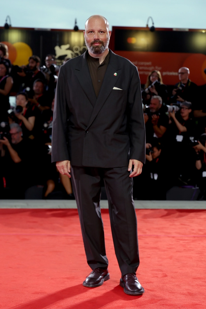 Венеция 2025: Эмма Стоун, муж Кирстен Данст Джесси Племонс и Уиллем Дефо на премьере фильма "Бугония"