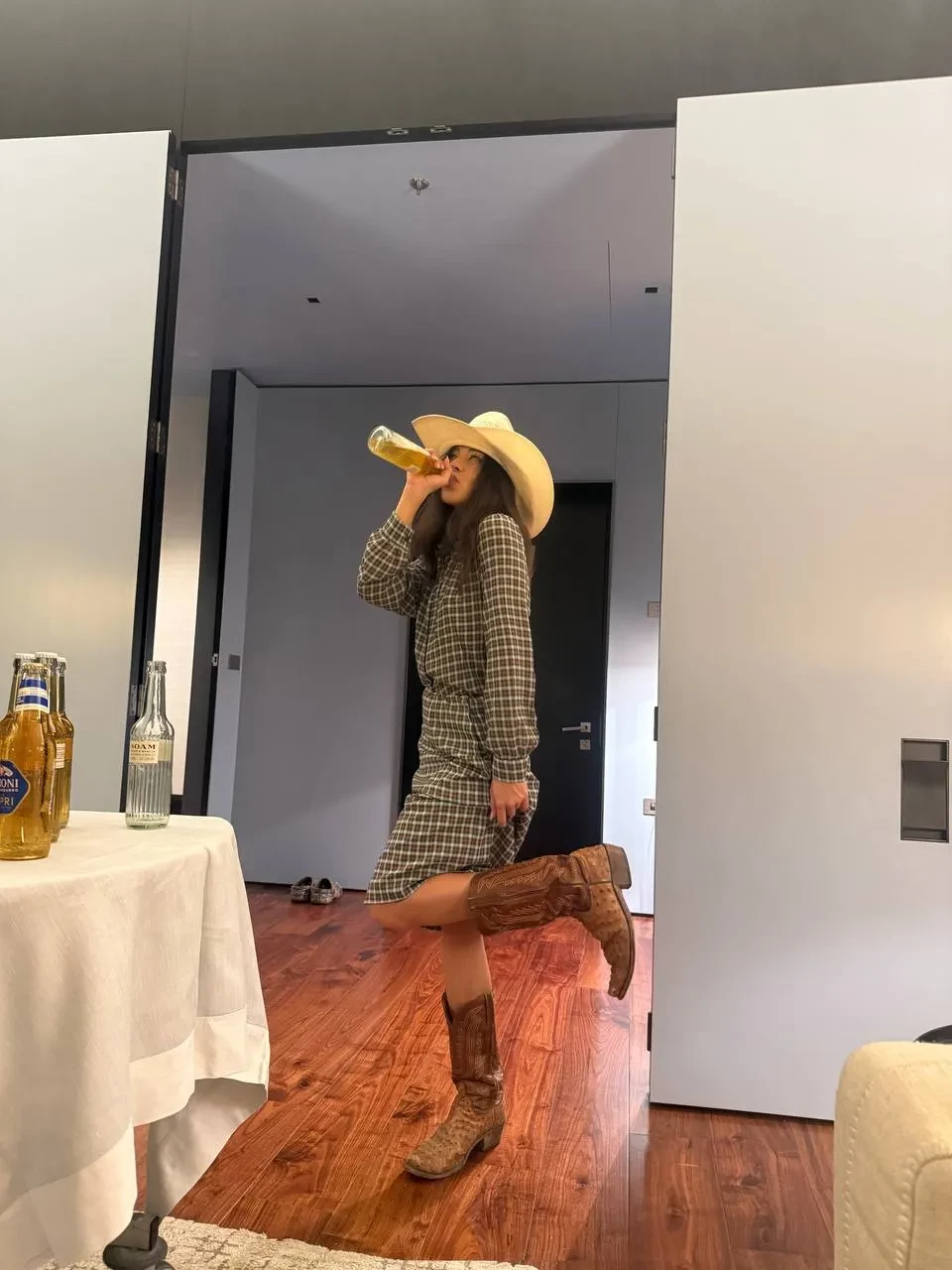 30-летний артист и 28-летняя блогерша сначала отправились на поздний шопинг в бутик Prada, который открыли в нерабочее время специально для них, а после поехали ужинать в ресторан Langosteria. Музыкант был одет в джинсовый костюм, ковбойскую шляпу и сапоги, а блогер надела на свидание голубое платье в стиле baby doll и белые туфли на шпильке.