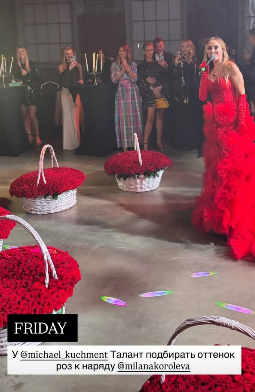 https://t.me/spletnik2006/40300В какой-то момент Кучмент взял микрофон и при всех поздравил жену с праздником: "Я желаю, самое главное, чтобы в твоей жизни было как можно больше ярких моментов, чтобы всегда было что вспомнить".