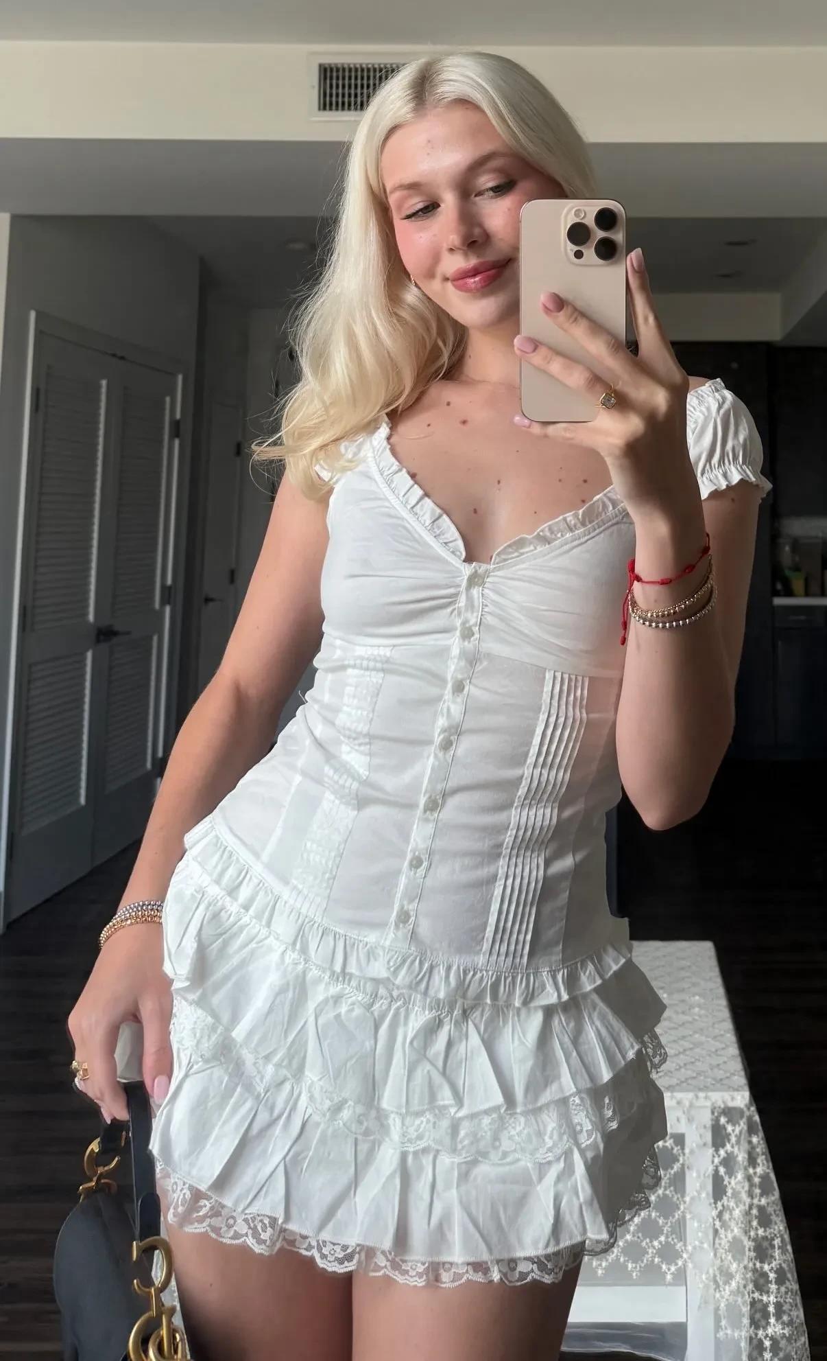 На снимках Соня позирует в бикини, белом мини-платье с сумкой Christian Dior, а также с розовыми волосами. Дочь звезды также показала свои ювелирные украшения: кольцо с крупным бриллиантом, похожее на помолвочное и которое она носит на безымянном пальце, и другие кольца Cartier, а также золотые серьги и браслеты.