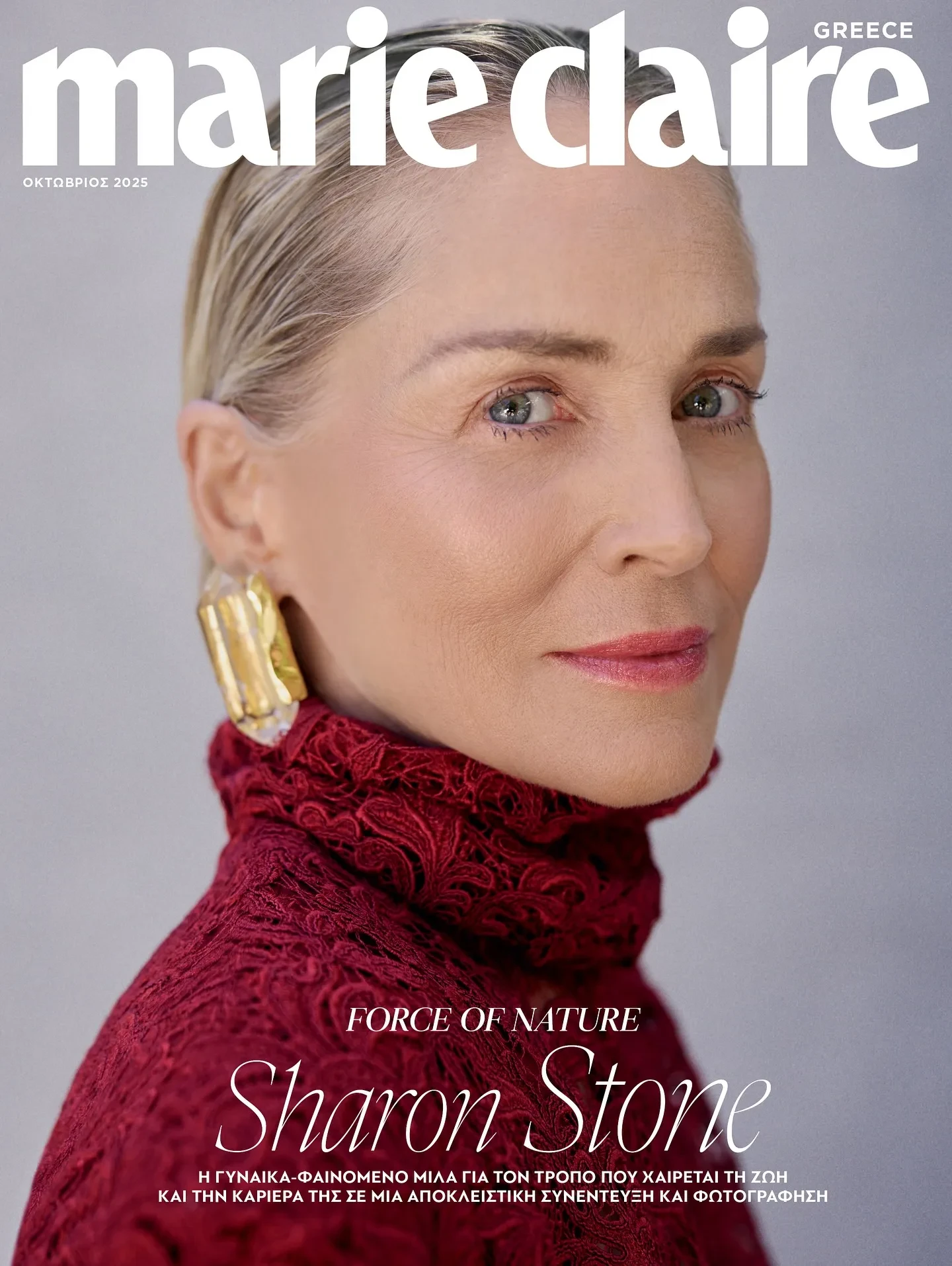 Шэрон Стоун стала героиней нового номера греческого Marie Claire. 67-летняя актриса предстала сразу на двух обложках журнала.
