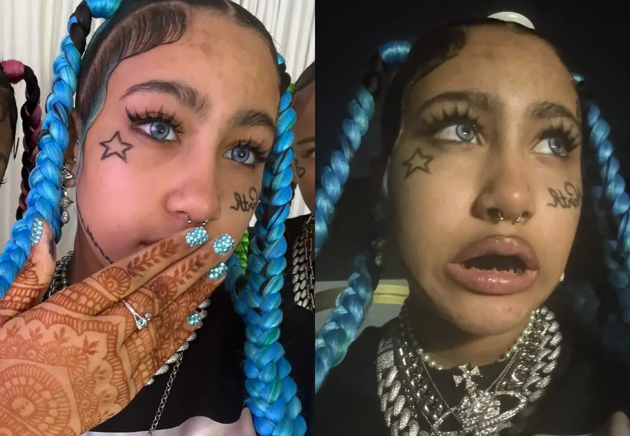 12-летняя Норт появилась в соцсетях с улыбкой (без грилзов), уложенными волосами и лёгким макияжем. Оказалось, что дочь рэпера примерила образ "хорошей девочки" только на один вечер — это оказался один из её костюмов на Хэллоуин. Уэст переоделась в 23-летнюю рэпершу Bktherula.