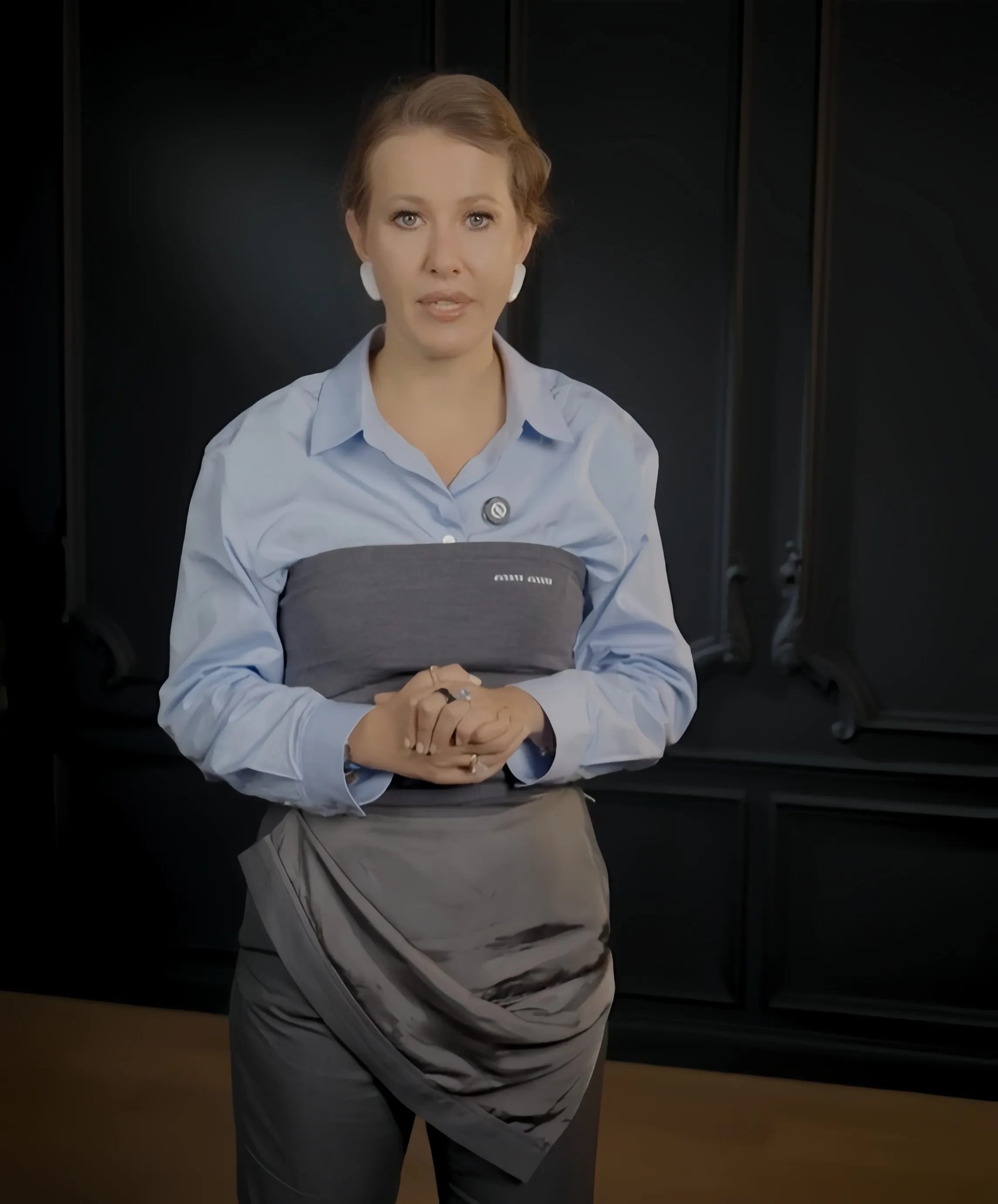 Собчак заявила, что регистрация пары прошла "естественно, в Донецке", намекнув на публичную патриотическую позицию Шамана и Мизулиной. Она также обратила внимание на "наряды военного покроя", в которых новобрачные пришли в ЗАГС, и их гостей, "похожих на конвой".