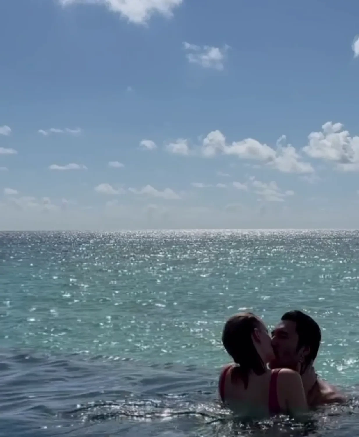 На снимках звезда "Фишера" позирует в бикини на фоне морского пейзажа и виллы, целуется с возлюбленным в бассейне и наслаждается местными закатами.