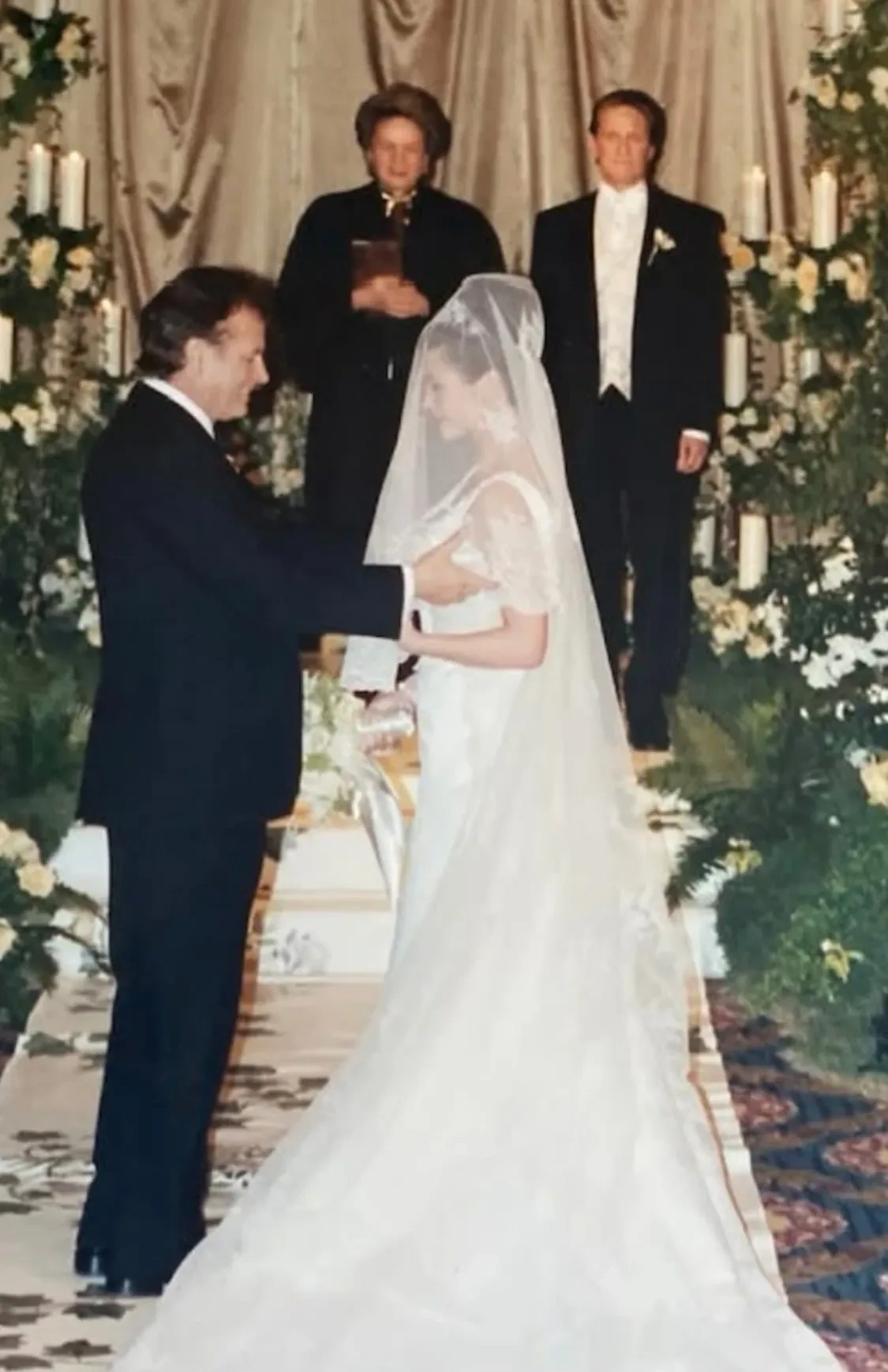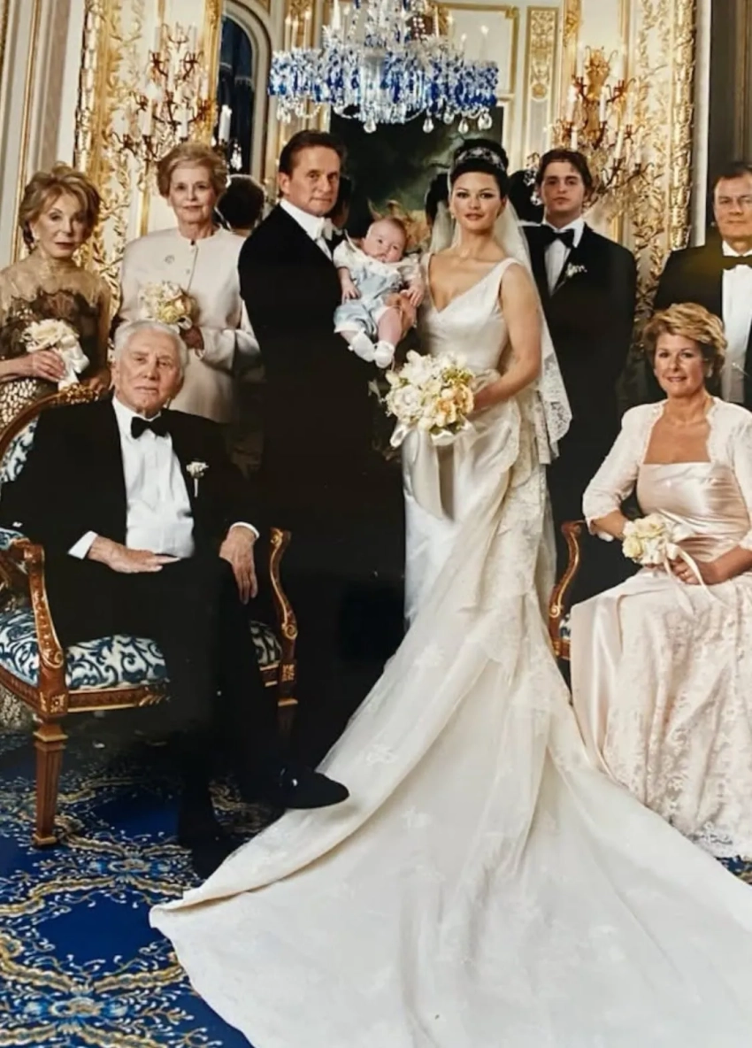 Кэтрин Зета-Джонс и Майкл Дуглас в день знакомстваДалее Зета-Джонс поделилась фотографии со свадьбы, которая прошла в отеле Plaza в Нью-Йорке в 2000 году. На снимках актриса позирует с женихом, их трёхмесячным сыном Диланом и родителями.