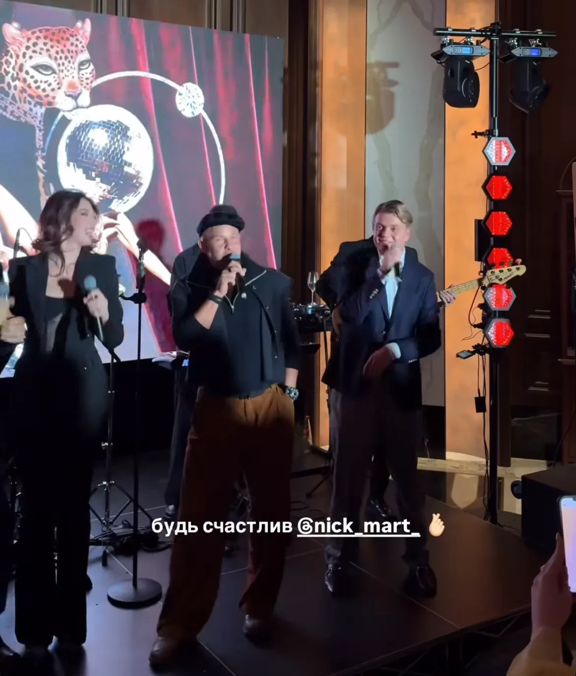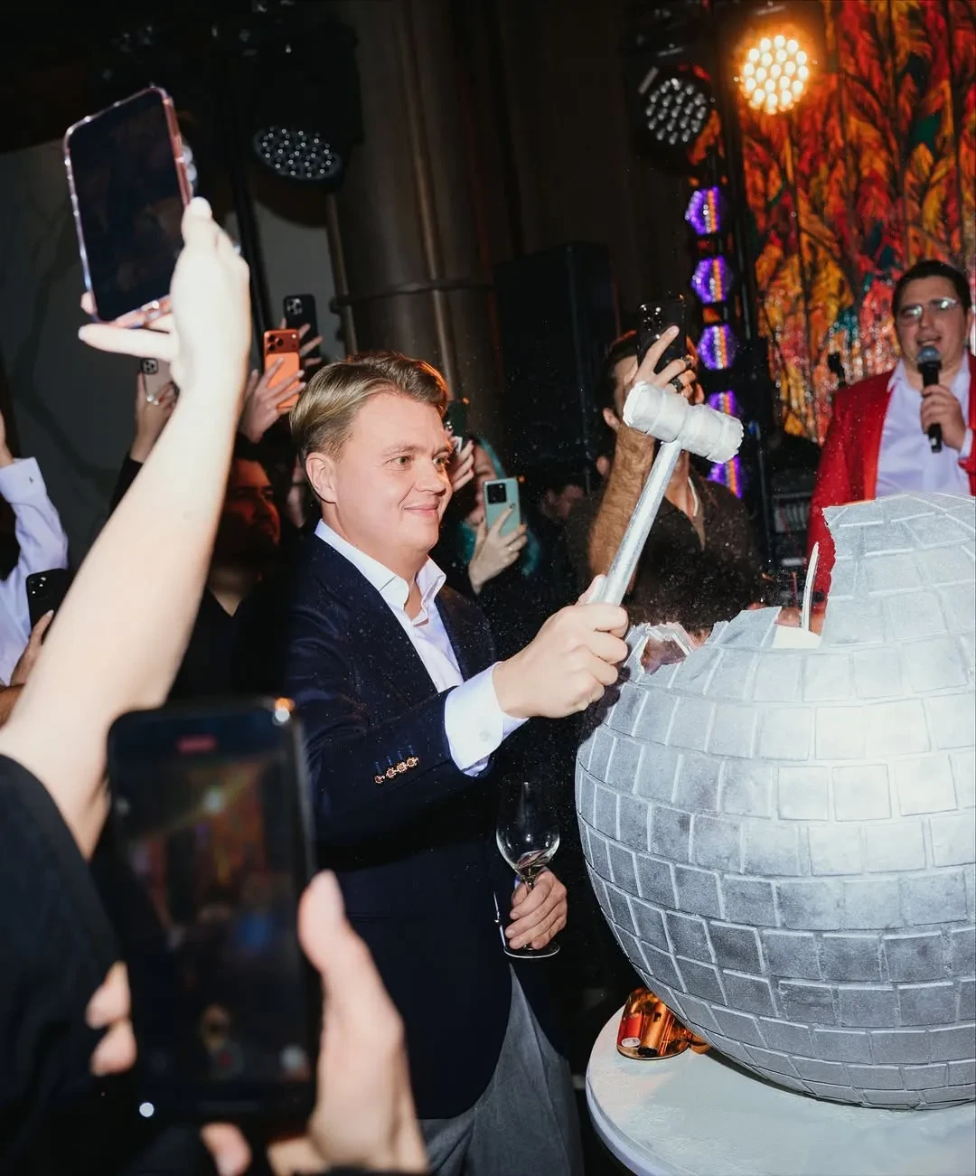 (по мнению Ксении Собчак, их брак фиктивный), тоже поздравил Мартынова песней. В конце вечера гостей и именинника ждал праздничный торт в форме диско-шара.