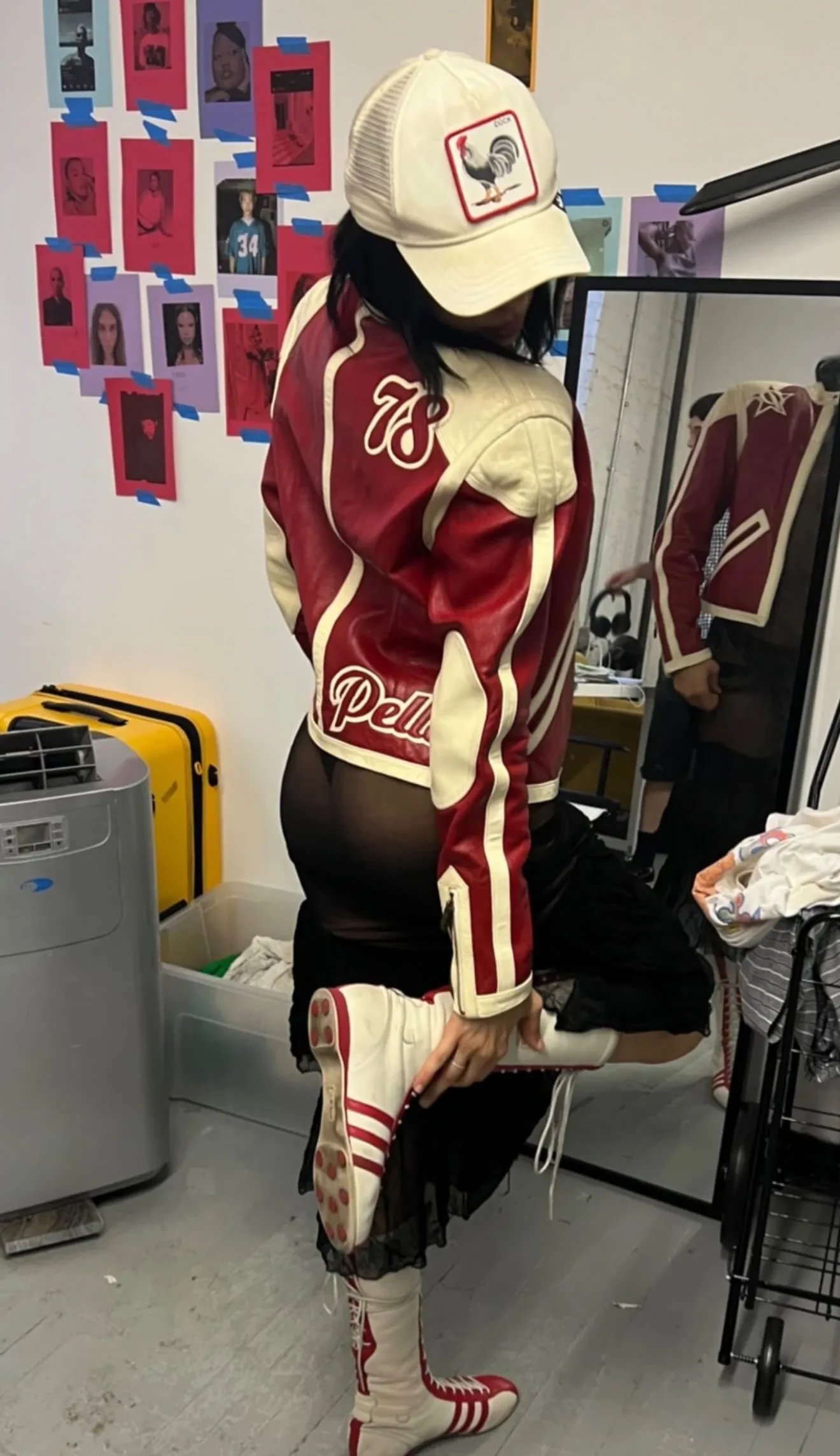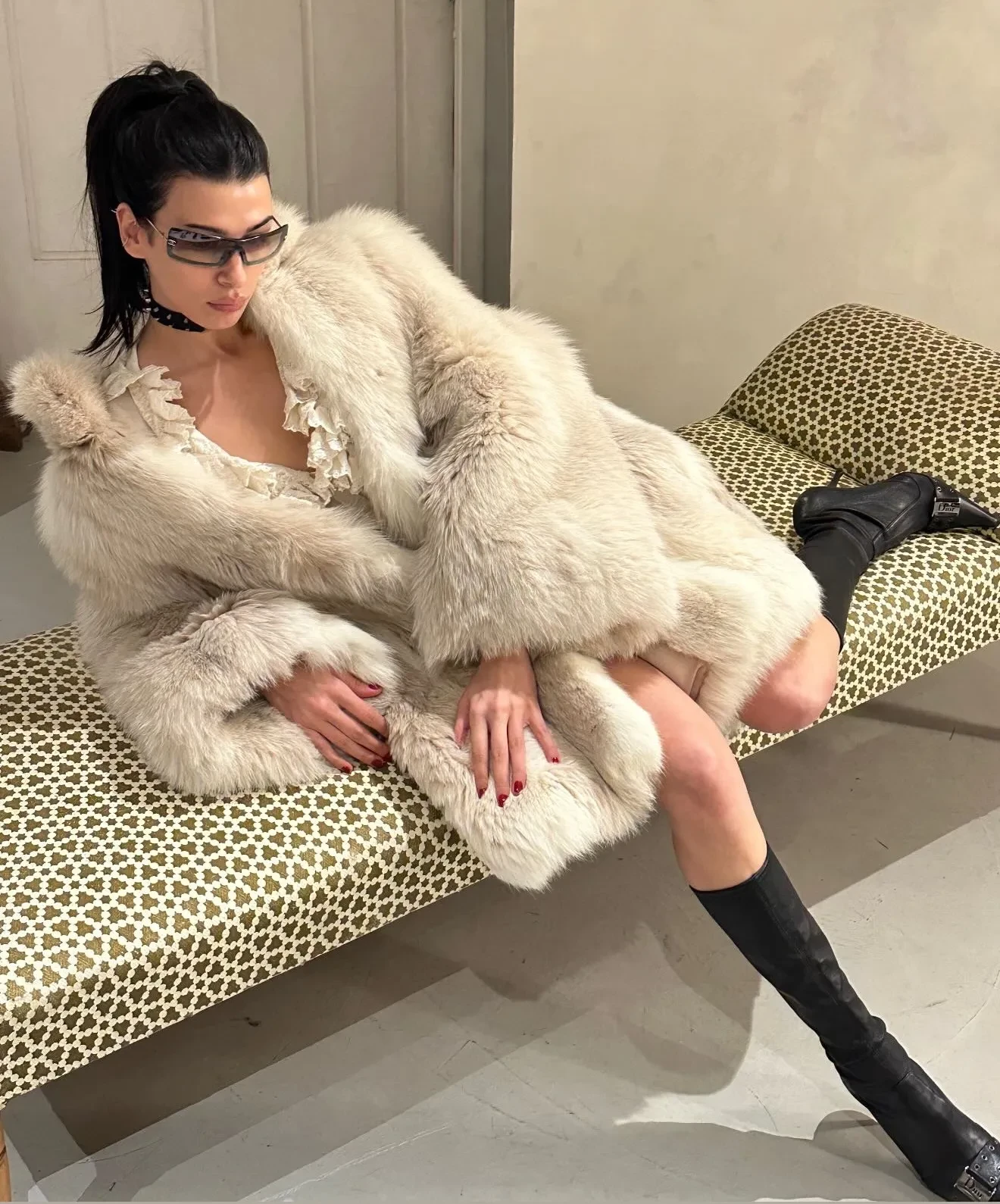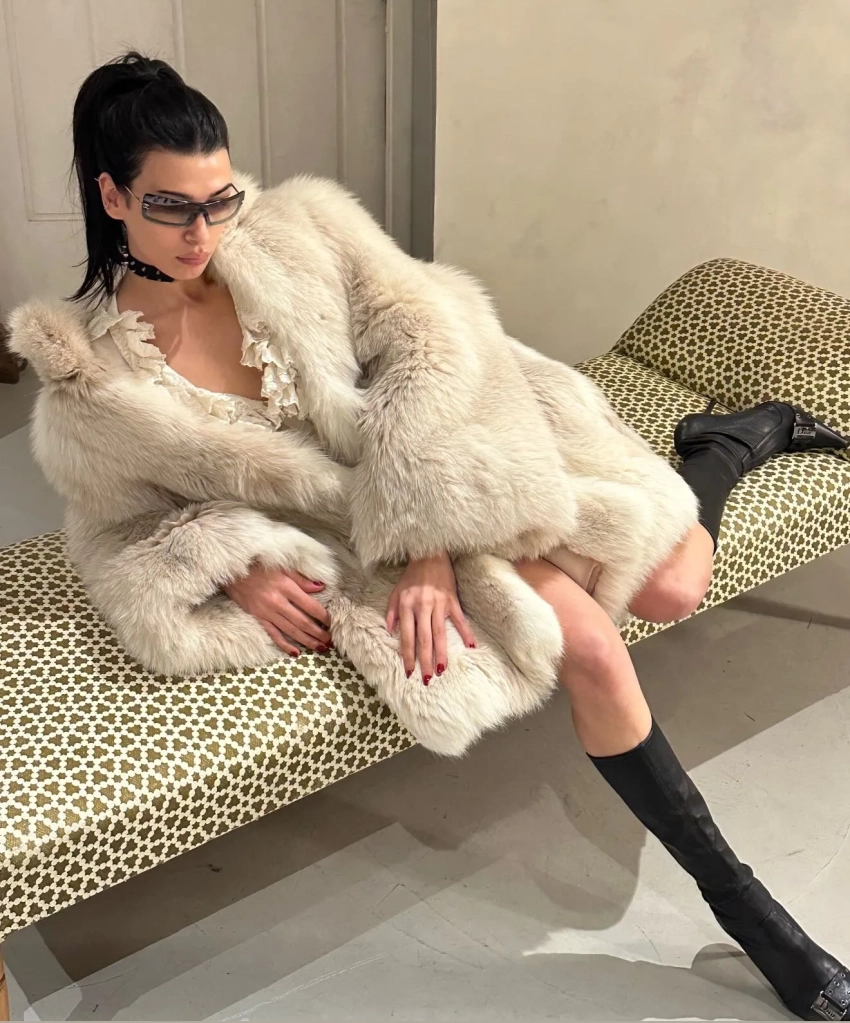 На снимках Кикнадзе позирует в прозрачной юбке и других образах, а также гуляет по городу в шубе. На одном из фото она запечатлена в примерочной вместе с бойфрендом — 25-летним рэпером 9mice (Найнмайс, настоящее имя — Сергей Дмитриев).