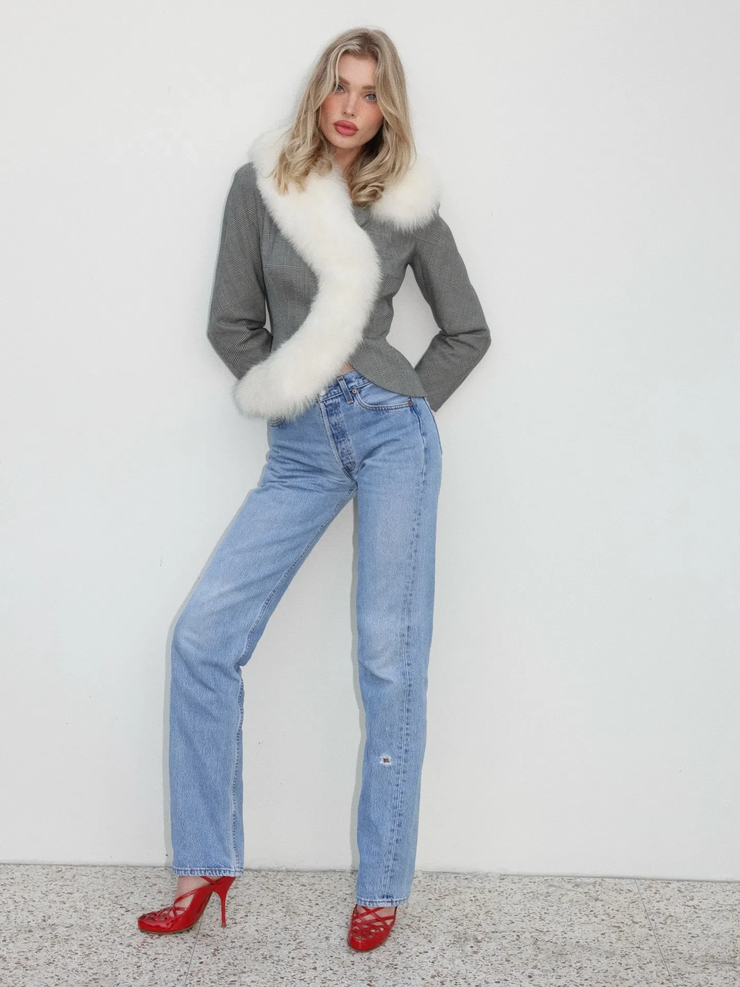 Съёмка прошла в саду загородного дома семьи, украшенного праздничной елью. Для фотосессии Эльза выбрала серый приталенный жакет с меховыми вставками, прямые джинсы и красные босоножки. Четырёхлетняя Тууликка была одета в песочный плащ, а её образ завершали хвостики с красными бархатными бантами. "Счастливого Рождества!", — подписала модель публикацию.
