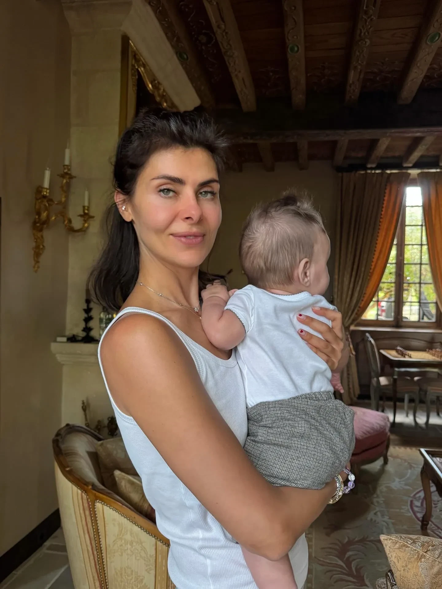 На одном из снимков Оболенцева позирует, прислонившись к спине некоего мужчины. Хотя его лицо скрыто, многие подписчики предположили, что это муж светской львицы, 61-летний миллиардер Евгений Швидлер. Также в подборке есть несколько редких фото с сыном супругов Марком, которому сейчас примерно семь месяцев.