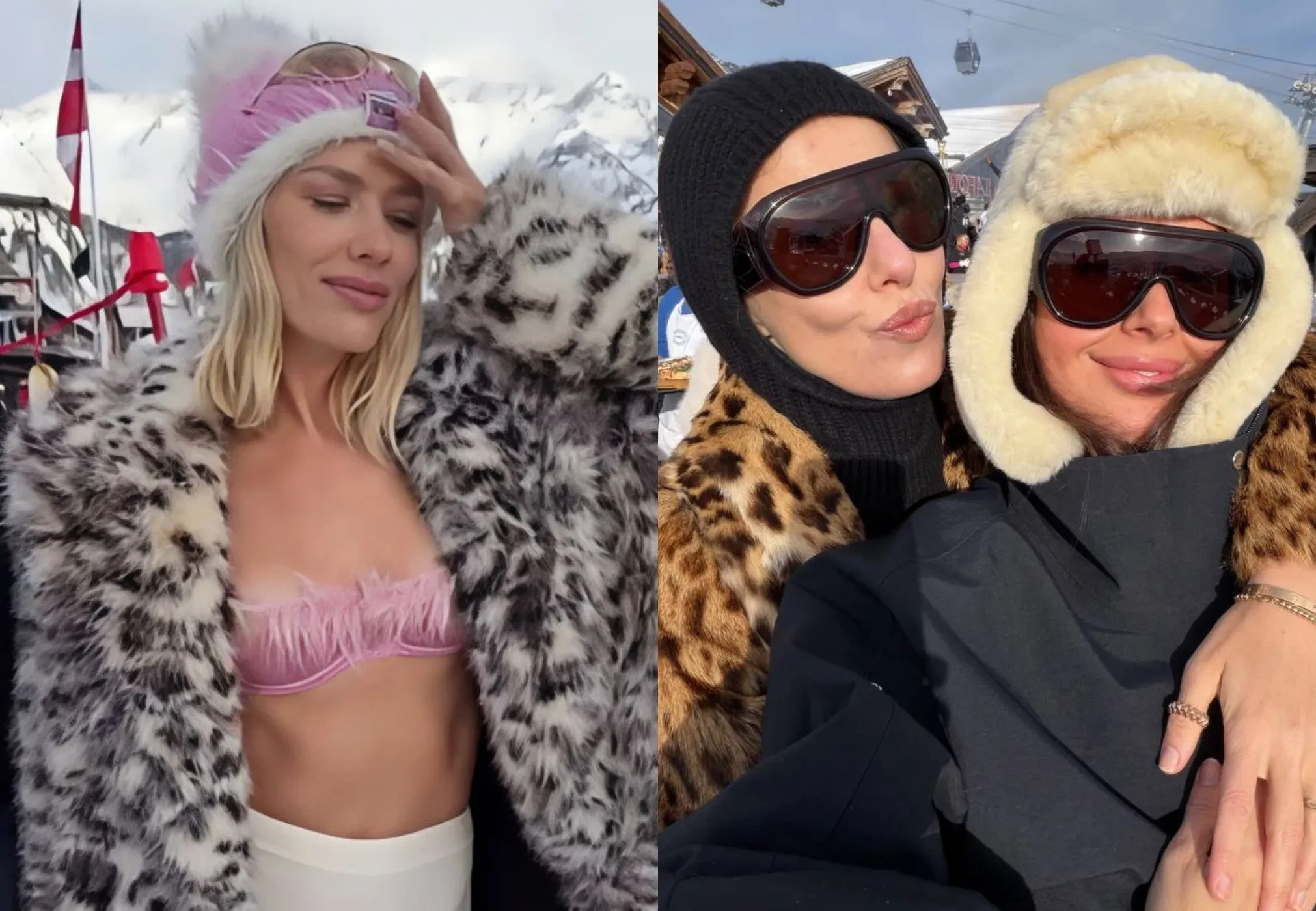 Шубы, прозрачные платья и бра с мехом: Ксения Собчак, Оксана Самойлова, Елена Перминова и Тарас Романов отдыхают в Куршевеле