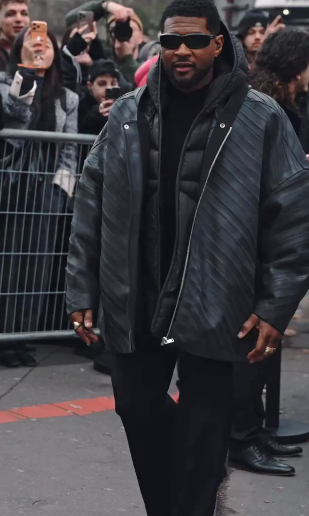 44-летний Рогов пришёл на шоу в чёрной одежде и серых ботильонах на каблуках, а Ольга Карпуть, которая кардинально сменила цвет волос, надела платье с разрезом и кожаный плащ. Также показ посетили певец Томми Кэш, Usher и 82-летняя супруга дизайнера Рика Оуэнса Мишель Лами. С ней ранее в шоуруме бренда встретилась Оксана Самойлова.