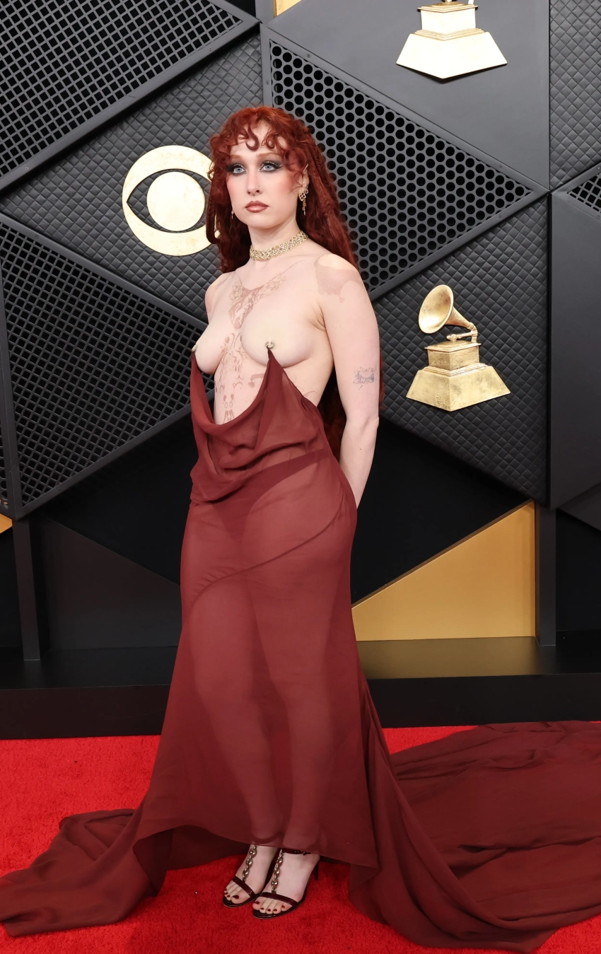 Одной из самых шокирующих и обсуждаемых тем церемонии стал выход Чаппелл Рон. 27-летняя певица появилась на церемонии в кастомном образе от Mugler, вдохновлённом архивной коллекцией Тьери Мюглера 1998 года. Прозрачная ткань её платья буквально держалась на пирсинге сосков (которые оказались бутафорскими накладками). При этом тело певицы было покрыто временными татуировками.В соцсетях Чаппелл уже прозвали "Бьянкой 2.0", имея в виду жену Канье Уэста Бьянку Цензори, которая вышла на красную дорожку "Грэмми" в прошлом году практически обнажённой. Впрочем, в отличие от Бьянки, чей образ сочли просто скандальным, выход Чаппелл критики назвали "высоким искусством".